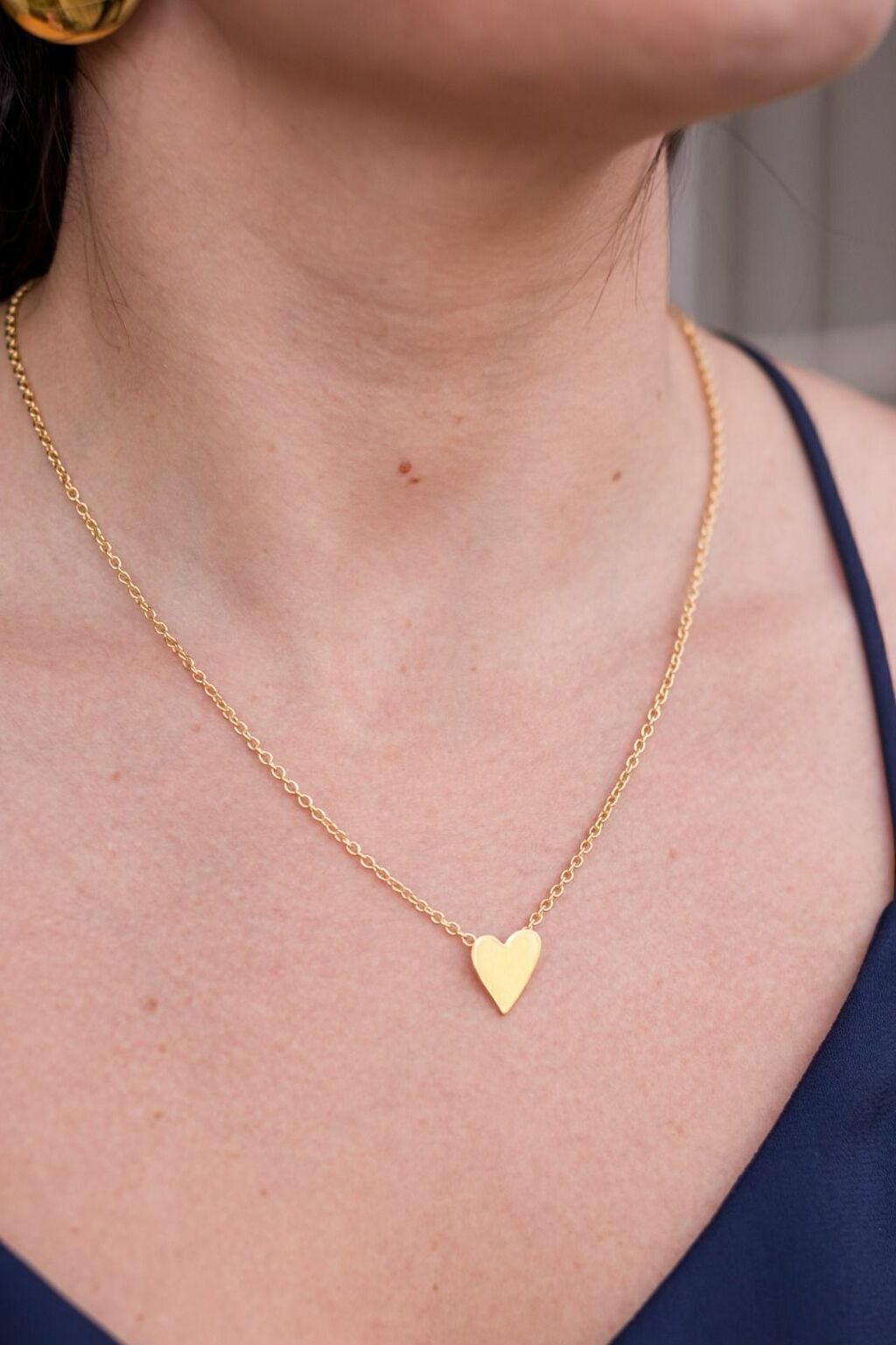 Corrente de elos pequeno com um pingente de coração liso pendurado - 40cm